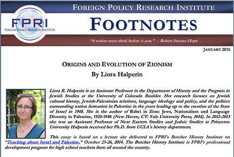 — Origins and Evolution of Zionism, Foreign Policy Research Institute